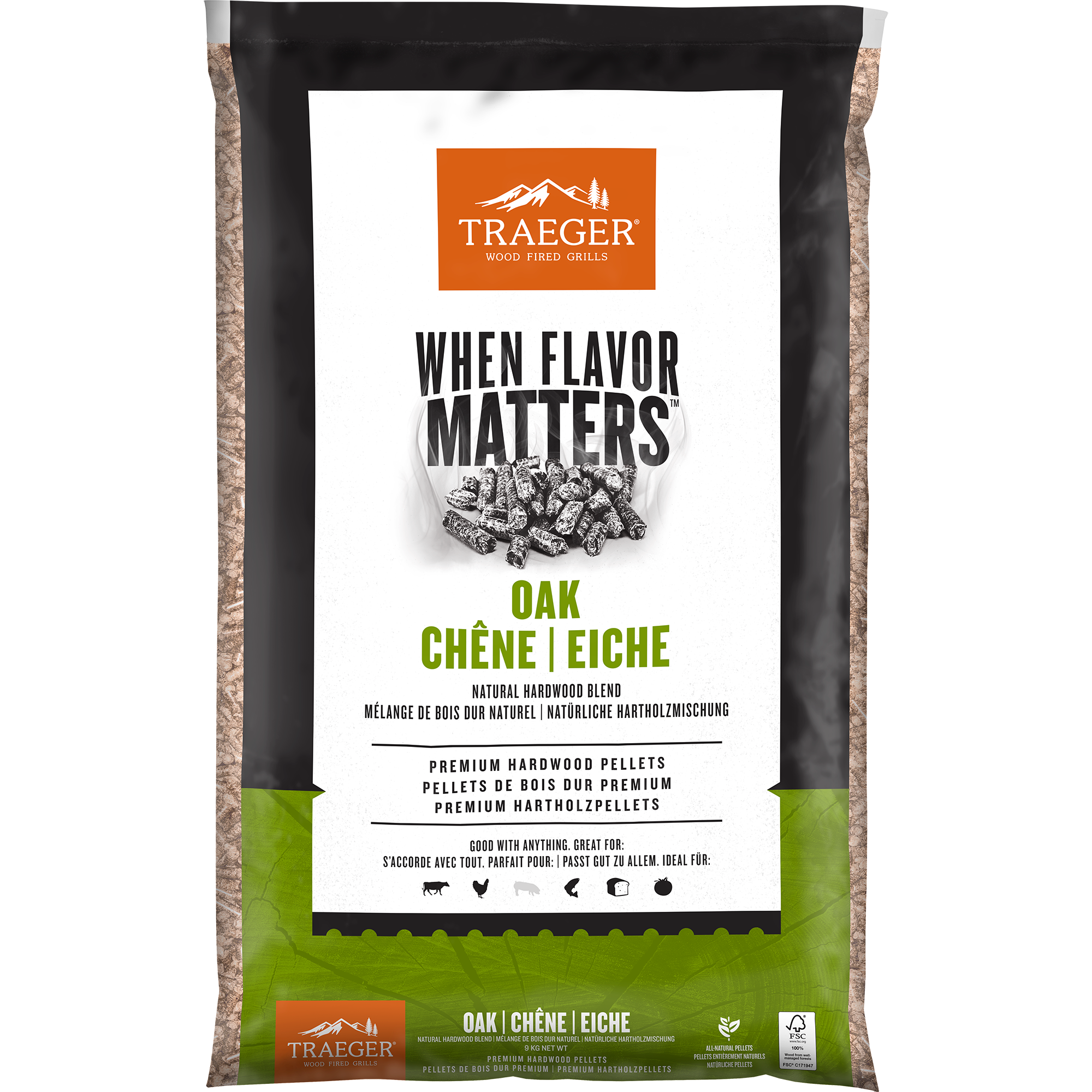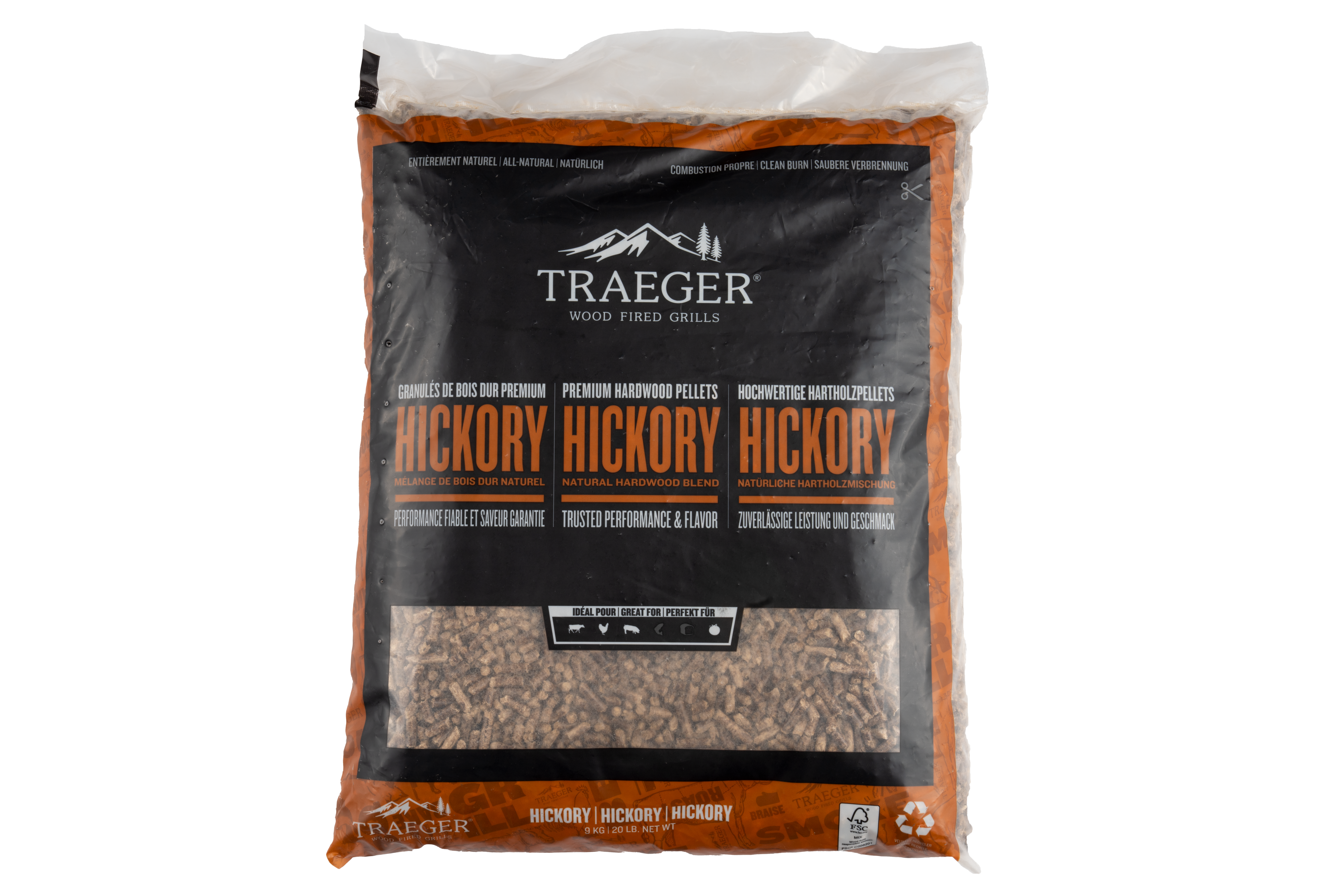 Our premium wood pellets are made from 100% natural, food-grade hardwood. Traeger pure wood pellets grant the perfect burn for optimal wood fired flavor. Made in the Poland and Forest Stewardship Council® Certified.
